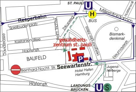 Lageplan Gesundheitszentrum St.Pauli (Seewartenstraße):
